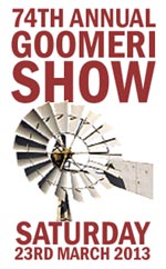 The 74th annual Goomeri Show will get underway at the Goomeri Showgrounds at the corner of Laird Street and the Burnett Highway, Goomeri from around 8:00am this morning through until late tonight. Because of recent storms and floods which tore the roof off the main pavilion and hammered the Showgrounds, this year's Show will be slightly reduced from normal: there won't be any horse or cattle events, and the culinary section (except for the famous Dark Rich Fruit Cake Competition) won't be running either. But there'll still be plenty to see and do, including displays of farm produce and flowers; the Fruit Cake judging at 12:00 noon; a special flood photography display; and lots of fun family entertainment including gumboot throwing; tug-o-wars; motorbike barrel racing; a mechanical bull; a jumping castle; miniature horses; and comedy acts by The Rusty Devils. There'll also be a spectacular fireworks display in the evening, including some new fireworks never seen at the Showgrounds before. In addition, entry to this year's Goomeri Show is by gold coin donation (with the proceeds going to help flood victims) so that everyone can come along and have a great day without a big outlay - something that many people in Goomeri and the surrounding districts could do with after the town's damp start to the year. More details? Phone the Show Society on (07) 4168-4177.
