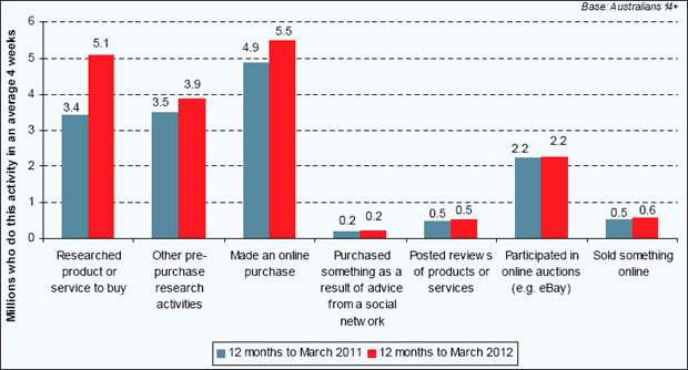 - Made an online purchase (done by nearly 5.5 million Australians aged 14-plus in an average four weeks);