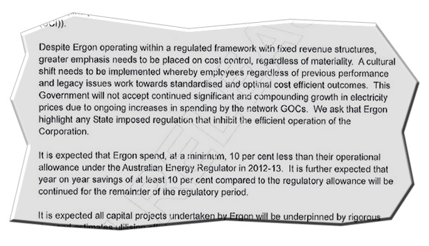 The Electrical Trades Union today released documents obtained under a “Right To Information” request which it says show the State Government directed Ergon Energy to apply cuts of at least 10 per cent in their costs.