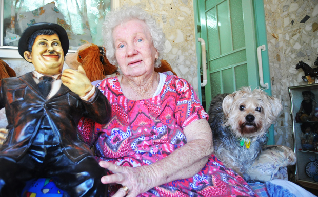 Margaret Labudda with her model of Stan Hardy (of Laurel & Hardy fame) and dog Lucky … both are definitely not for sale