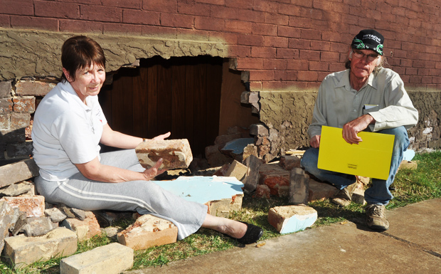 Cherry and Denis Carroll inspected the damage this morning and found bits and pieces of the vehicle, including a wheelcover, at the scene.