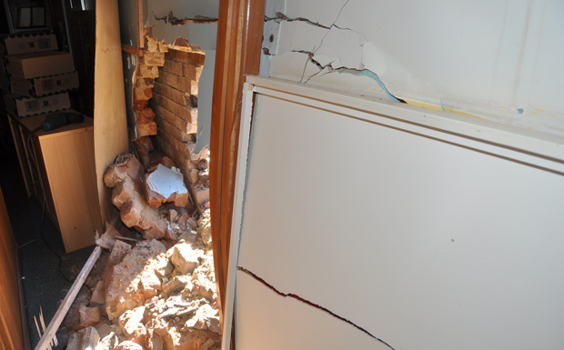 As well as smashing through mortar and bricks, the crash dislodged wall panelling and a door.