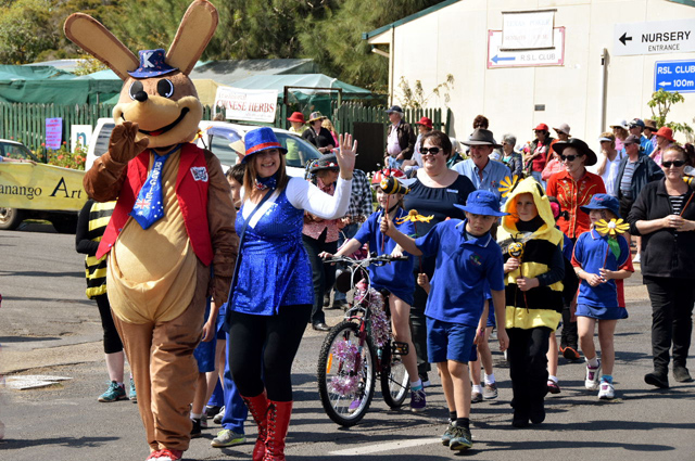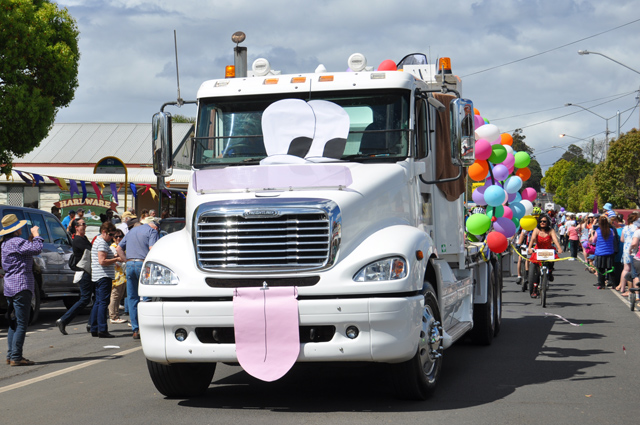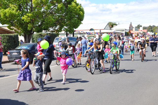 The Brisbane Valley Rail Trail was a theme of the parade with displays by cyclists and horse riders.