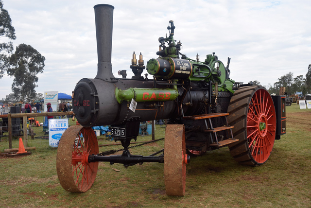 Getting ready to roar into life … a couple of cranks and this Case tractor was ready to go