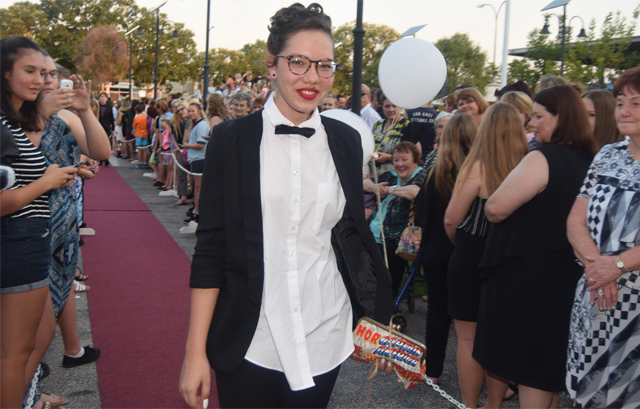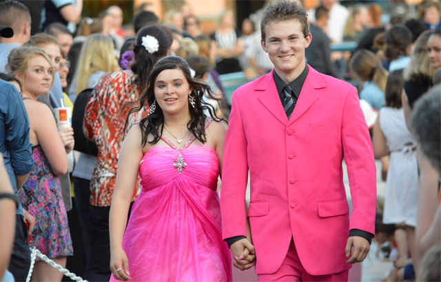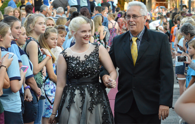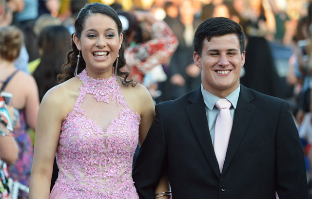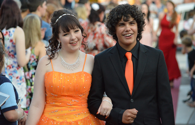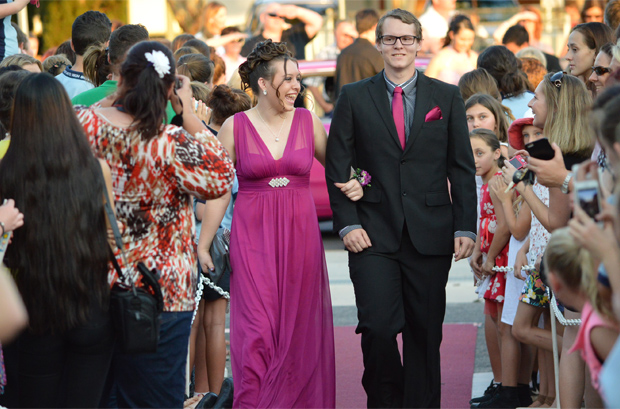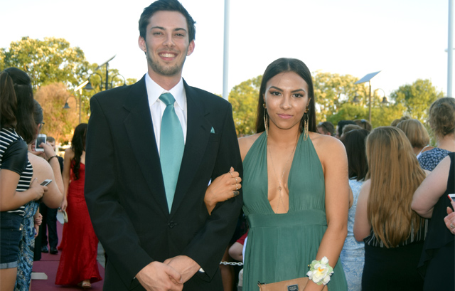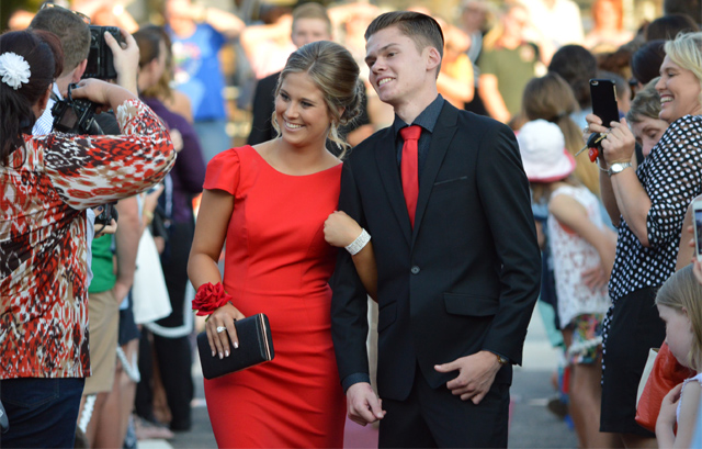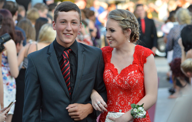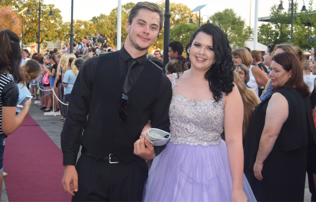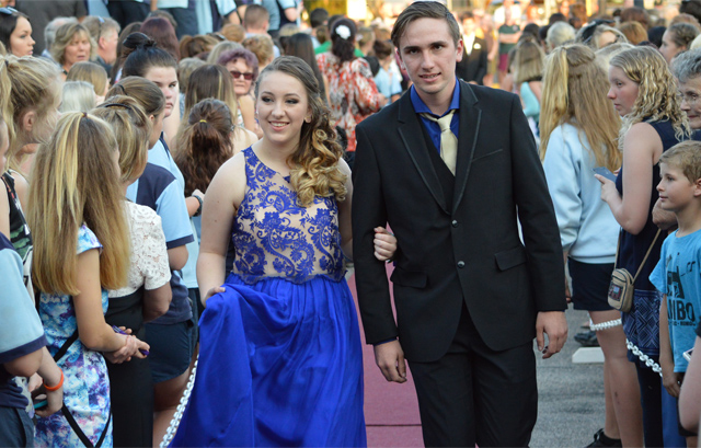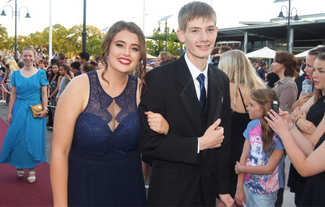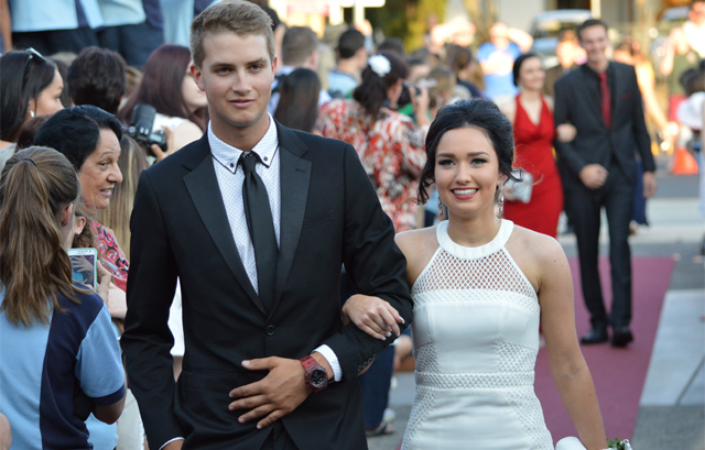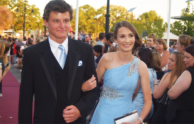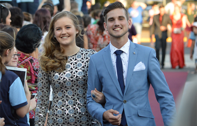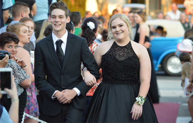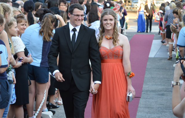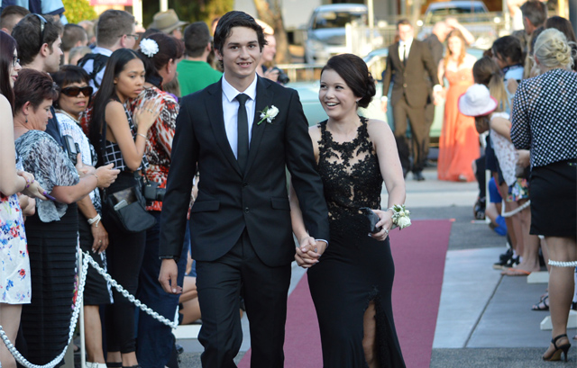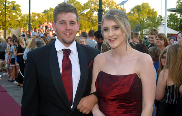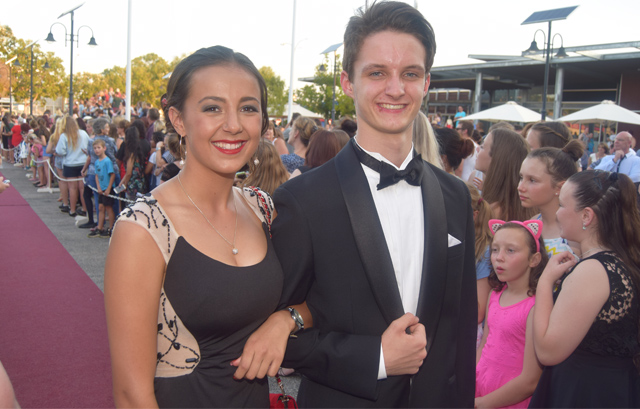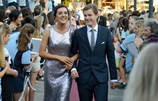 Madison Weber and Adam Geiger walk down the red carpet leading to Kingaroy Town Hall