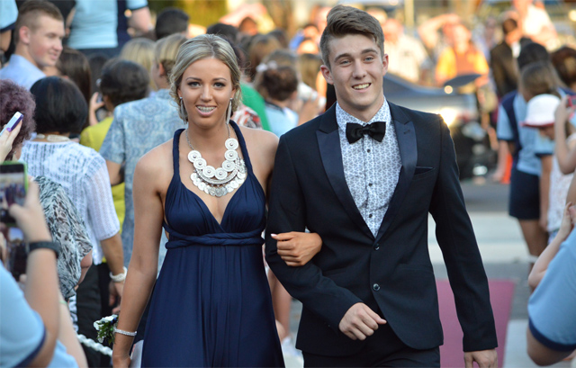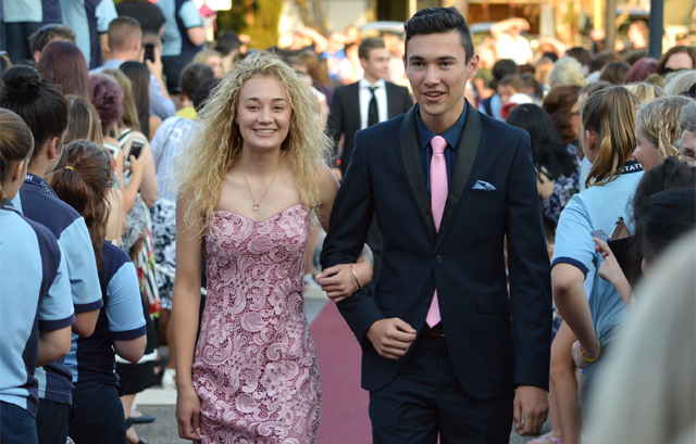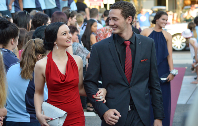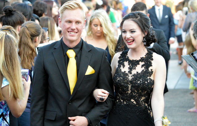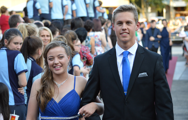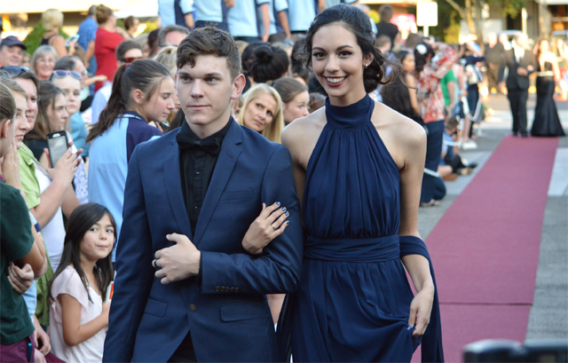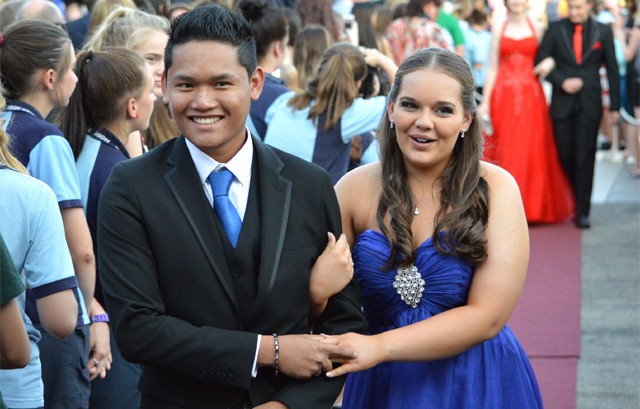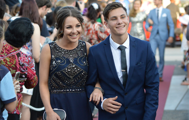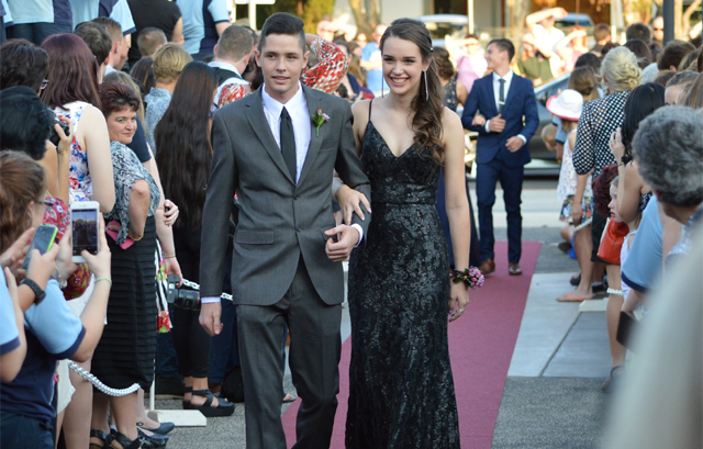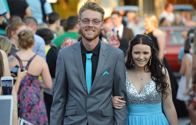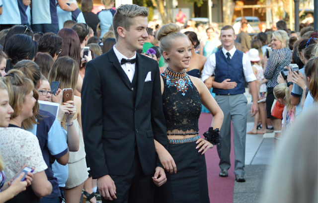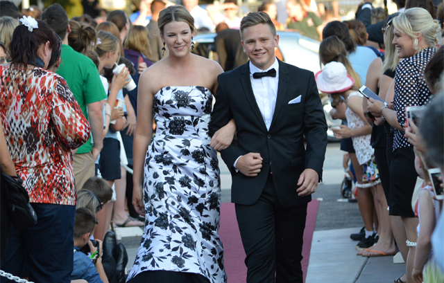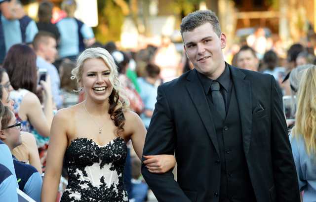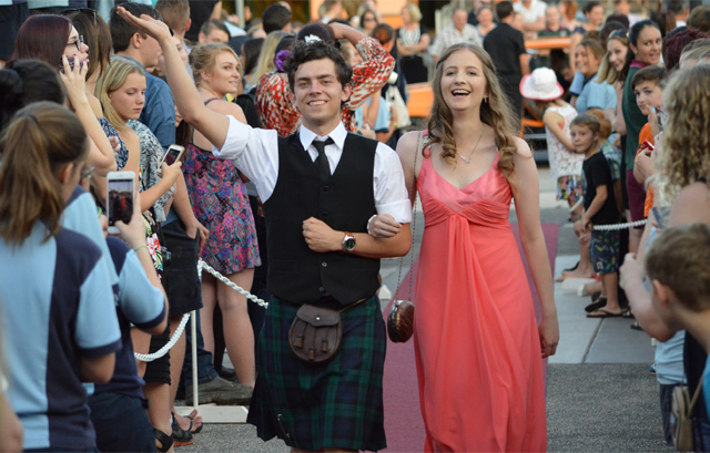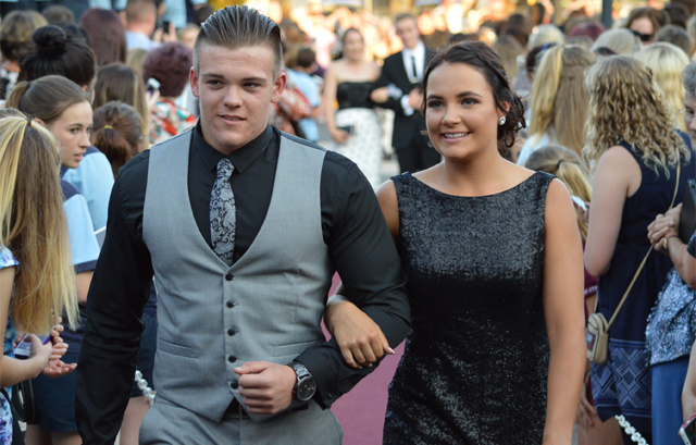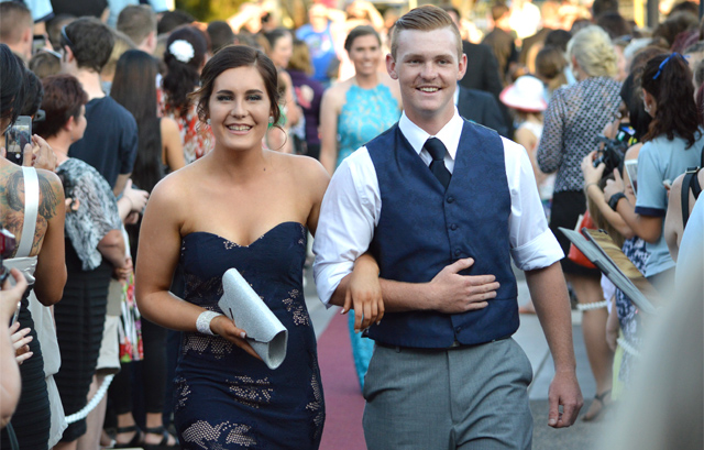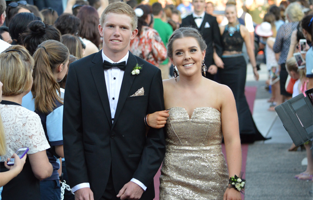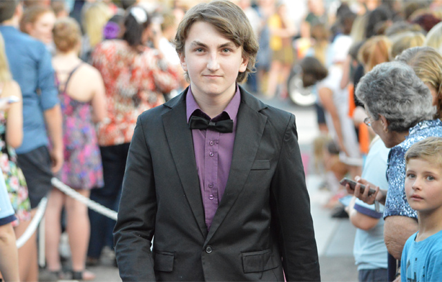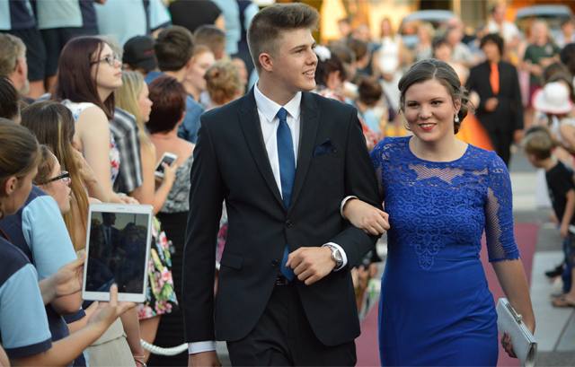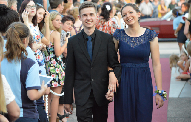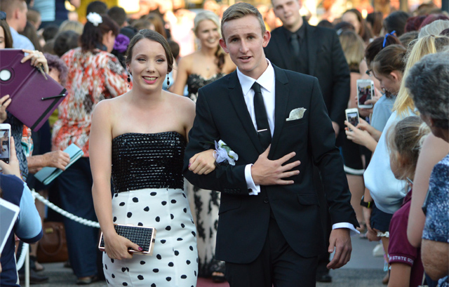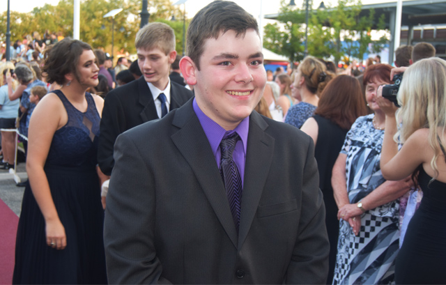 There were plenty of nervous Kingaroy State High School Year 12s on the red carpet leading to the Town Hall on Thursday evening, but the bravest surely must have been Adam Geiger.