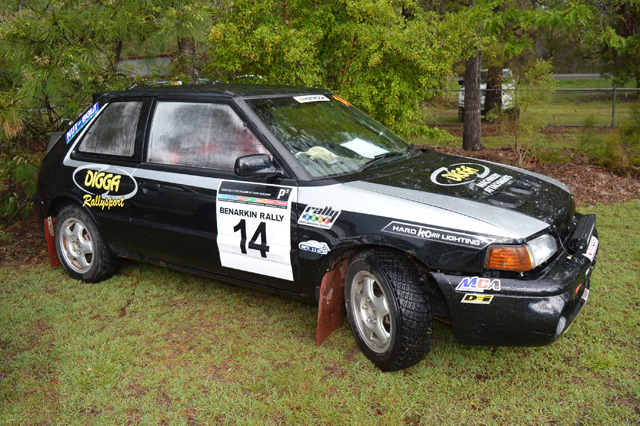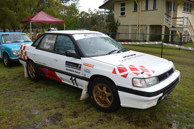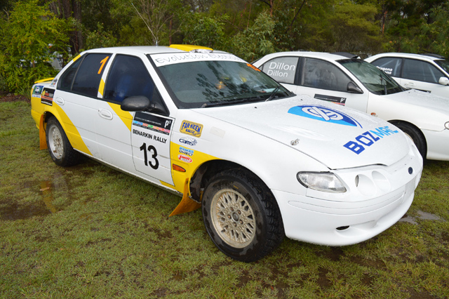 In the meantime, the cars and drivers gathered at the rally headquarters, Benarkin State School, waiting patiently for a decision from the stewards about the state of the track.