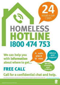 The Homeless Hotline number is 1800-474-753.