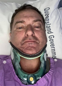 He suffered a fractured skull and vertebra, bruising, strains and soft tissue injuries and was transported to Royal Brisbane and Women’s Hospital.