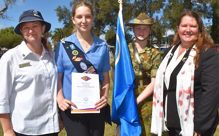 The Kingaroy Girl Guides members had gathered together in uniform to take part in the ceremony – they marched in the street parade and laid a wreath – so it was the perfect opportunity to honour one of their own.