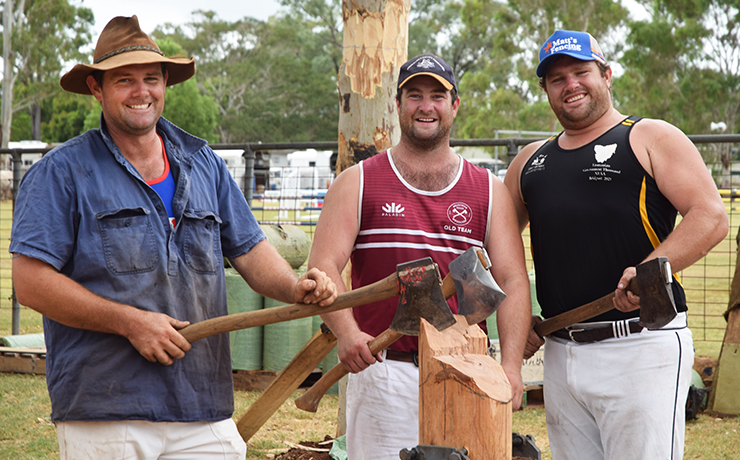 Getting ready for the next competition … Bryan Wagner, Proston; Jack Argent, Blackbutt; and Gerald Youles, Kilcoy