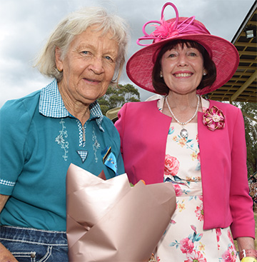Proston Show Society secretary Helen Young was presented with flowers by Mayor Kathy Duff