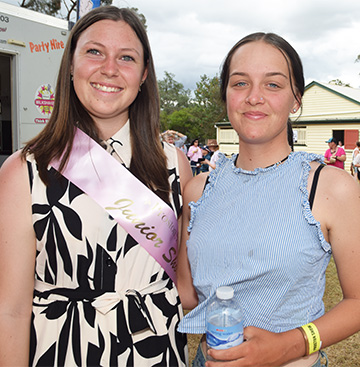2025 Proston Junior Showgirl Alivia Wieland, from Hivesville, with 2024 Showgirl Chloe Scanlon
