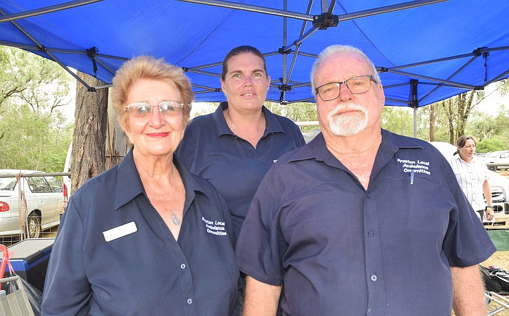 Proston Local Ambulance Committee members are planning to host first aid training in Proston soon … from left, treasurer Margaret Westerman, secretary Laine Robertson and president David HunterProston Show Society president Mortimer Duff with Josh Steinhardt, from Murgon, and Darryl Fitzgerald, from Rainbow Beach