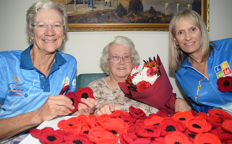 The Orana Aged Care resident has made 200 of the woollen poppies which will be presented to the cyclists when they register at Wondai Sportsgrounds on April 24 for the three-day Bicycle Queensland event.