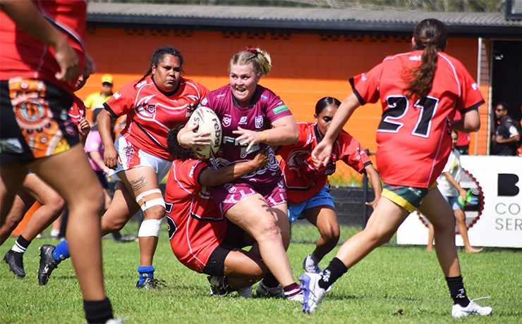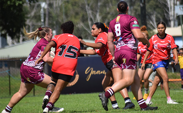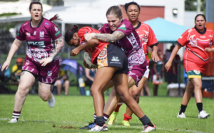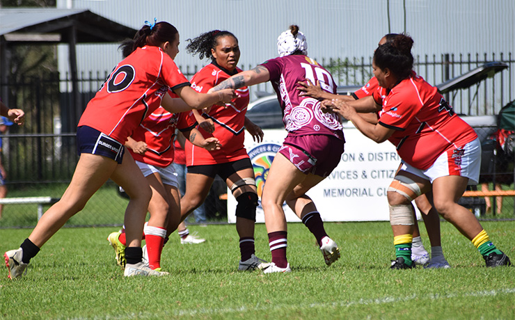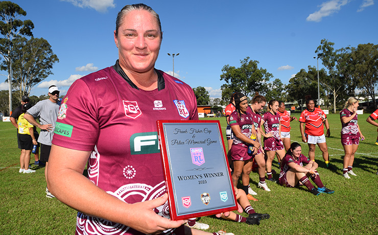 The Queensland Police Women’s side put on an arresting performance to defeat the a combined Bundaberg / Wide Bay Bulls Indigenous women’s team 44-0 at Cherbourg as part of the Frank Fisher Cup Day event.