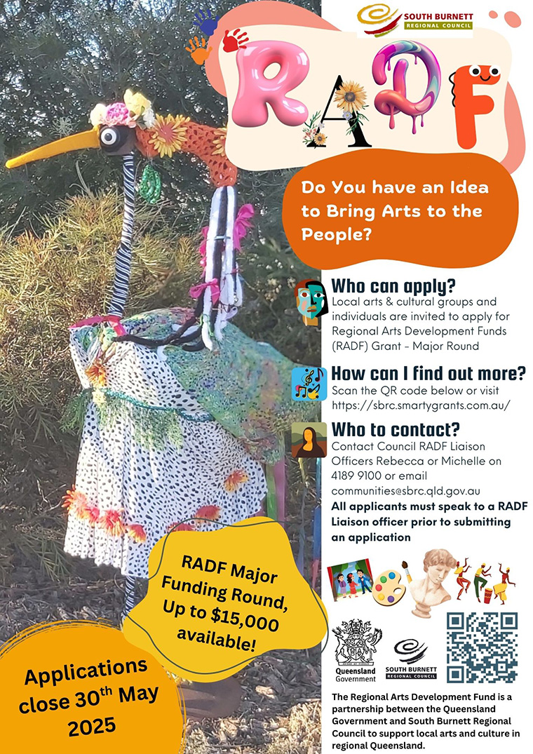 RADF is a joint grants program funded by Arts Queensland and local councils.