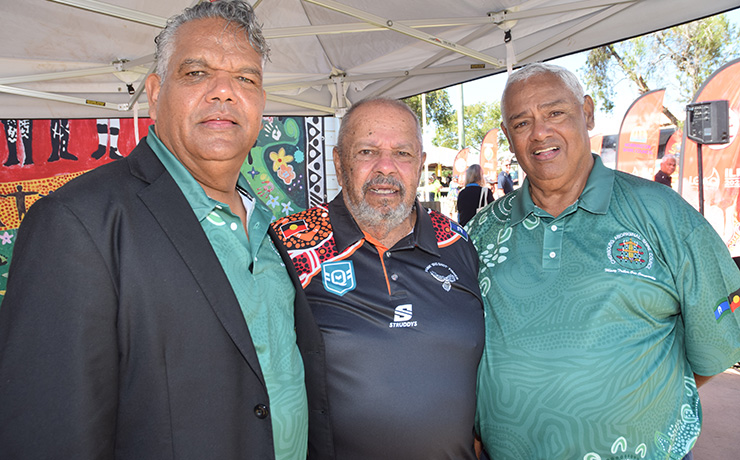 Cherbourg Mayor Bruce Simpson, Elder Uncle Eric Law AM and Deputy Mayor Gordon Wragge