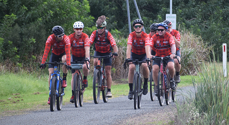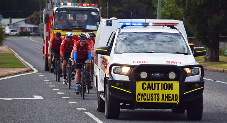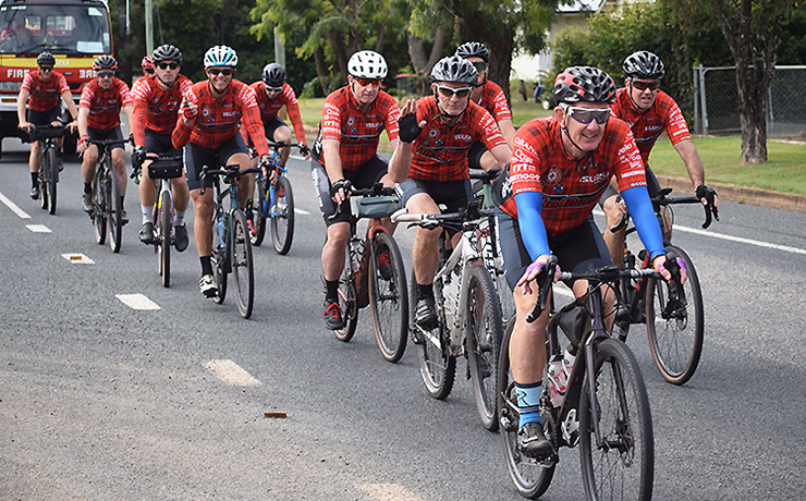 Cyclists taking part in the annual Queensland Fire Department Bike 4 Burns charity ride rolled into Kingaroy on Thursday afternoon as part of their seven-day trek to support the Children’s Hospital Foundation.