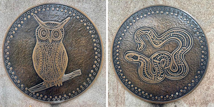 They depict an owl and a carpet snake which embody significant meanings to Wakka Wakka people.