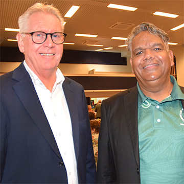 Compere for the night John Carey with Cherbourg Mayor Bruce Simpson who did the Welcome To Country