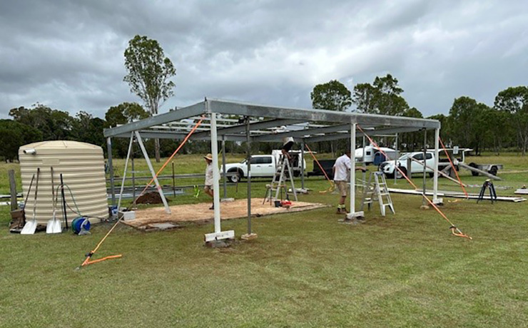 The new shed – actually a modified carport – was donated to KAMS by the Model Aeronautical Association of Queensland (MAAQ).