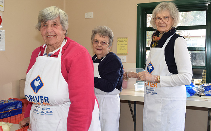 In the canteen, volunteers from the local Driver Reviver stop were kept busy, serving up sausages on bread.