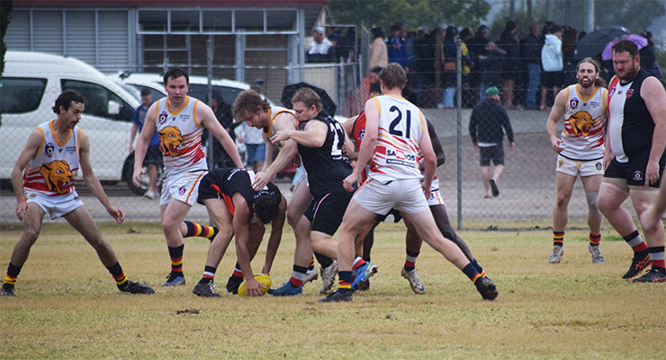 University Cougars – in second place on the Darling Downs AFL ladder – were too strong for the Saints’ men at Lyle Vidler Oval last Saturday.