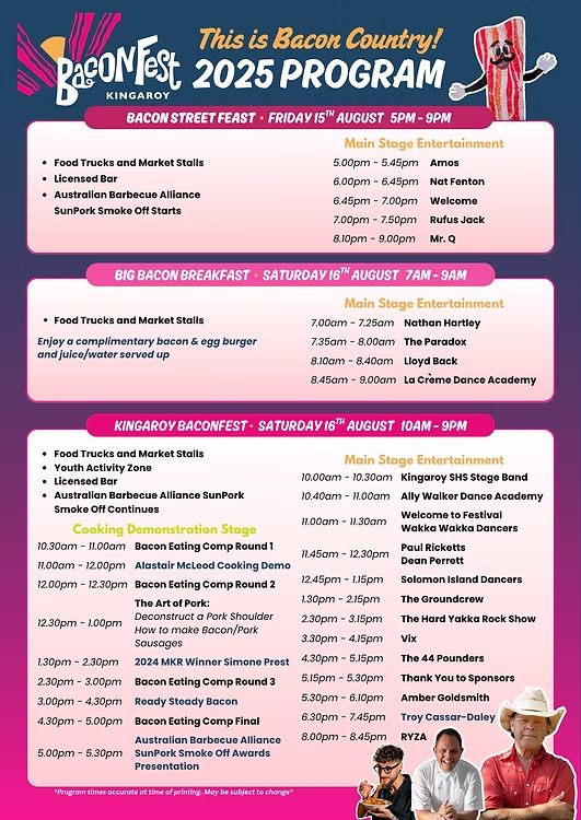 - Related article: Kingaroy’s Pigging Out for BaconFest