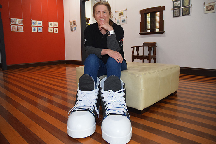 Don’t be surprised if you see a cameraman and an artist travelling around the region over the next eight months accompanied by a very large pair of gym boots.