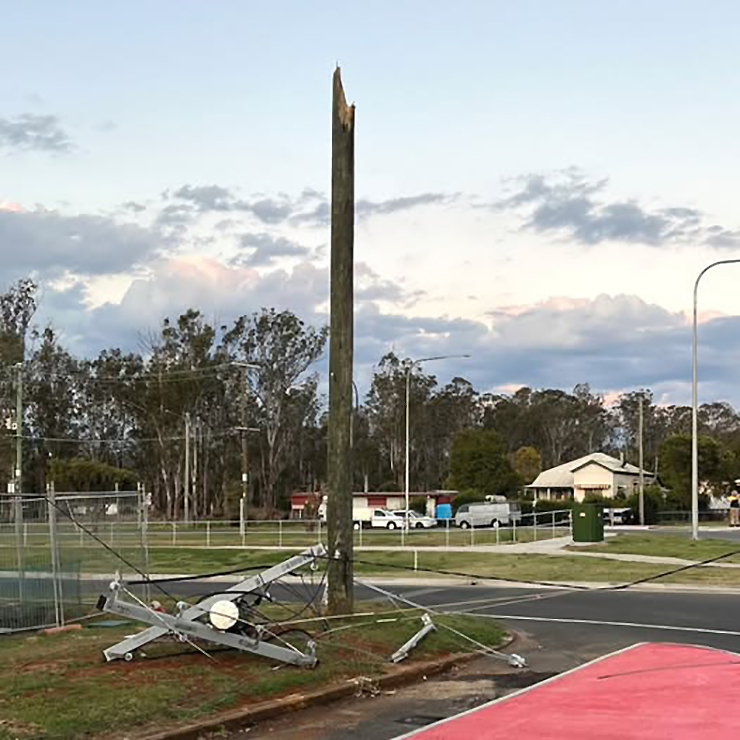 Almost 60 Ergon Energy customers – including the nearby Kingaroy Country Motel – lost power on Sunday evening after an electricity pole was snapped by a truck.