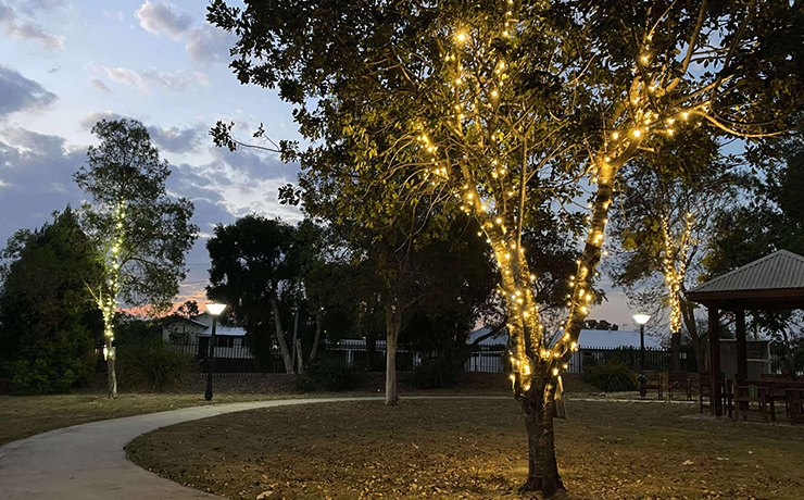 Wondai Country Running Festival began the tree lighting project in 2022, and since then seven large trees have been lit up as well as lights strung around the Wondai Art Gallery.