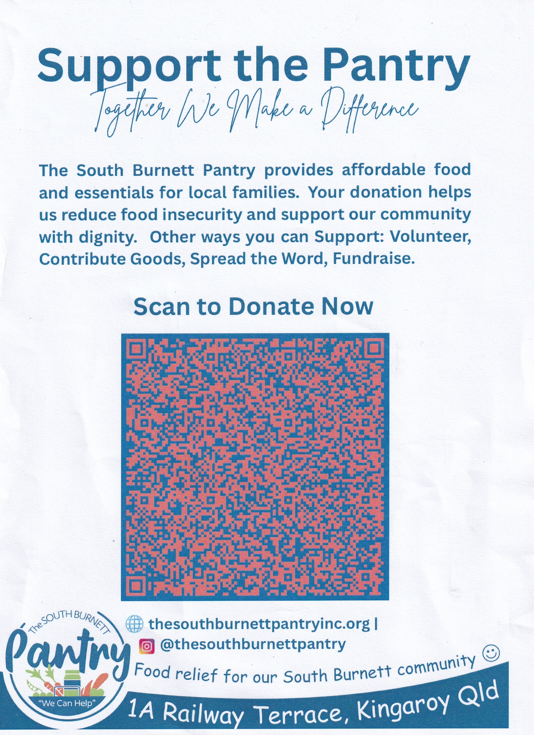 Supporting the Pantry for the next three years are South Burnett Care ($10,000/year), South Burnett CTC ($10,000/year) and Kingaroy Rotary ($5000/year).