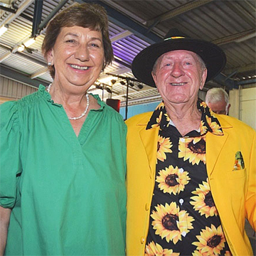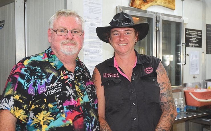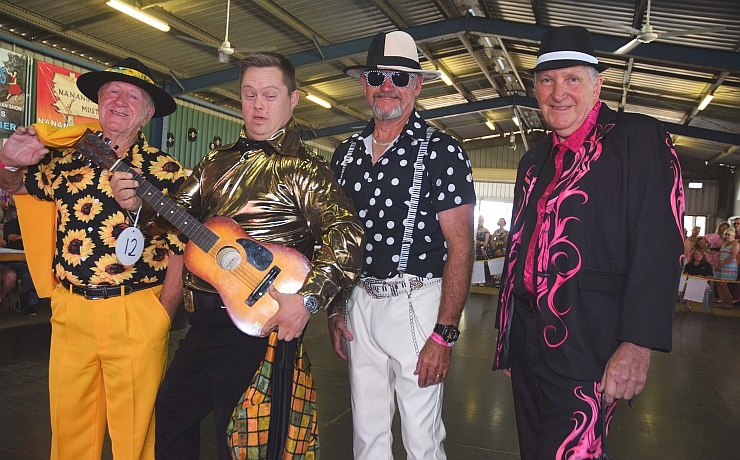It’s not all rock’n’roll at Waterhole Rocks … line dancers also filled the floor, and they even did “the Nutbush” at one stage!Waterhole Rocks founders Terry and Rhonda Mackrell (with the inevitable photobomber!)The Waterhole Rocks crew … from left, Terry and Rhonda Mackrell, Gloria Fleming, Wendy Mathews and Les Schloss (Photo: Jane Erkens)Volunteering at the bar were Warren Lamberton and Rebecca MoysesThe Dodgie Rockers, ie. Ferret, Brad and Sam, were just one of the many bands on stage during Waterhole RocksDiana Pagano and Graham Sharman were visiting from BrisbaneFashion competition judges … Nanango’s Kayleen Bochmann and Jenny and Rod MorganFashion parade entrant Linda Mogg, from Murrumba Downs, blows a kiss towards the judgesEntrants (and pup Zoe) line up in the Women’s category in the fashion competitionEntrants in the Men’s fashion competition … former Nanango resident Jae Clarke, second from left, came back just for the occasion!Entrants line up for the judges in the “Couples” category of the fashion competition