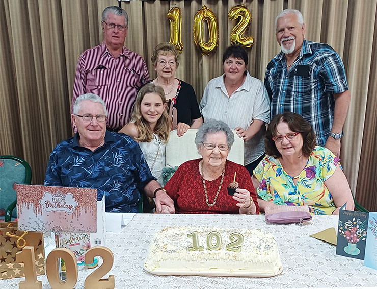 Murgon resident Gladys Birch celebrated her 102nd birthday on October 5 with a special morning tea at Southern Cross Care’s Castra aged care home.