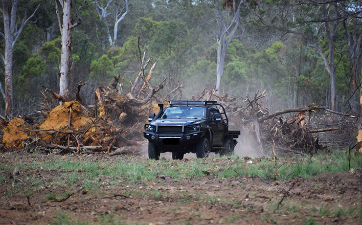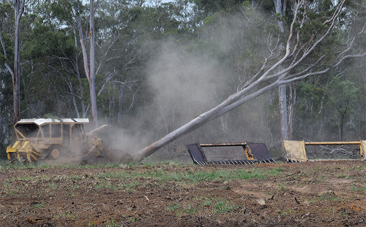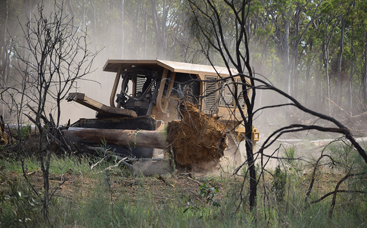 Protests erupted on social media earlier this week when two bulldozers began knocking over trees and piling up the fallen timber into large stacks on the Taabinga site.
