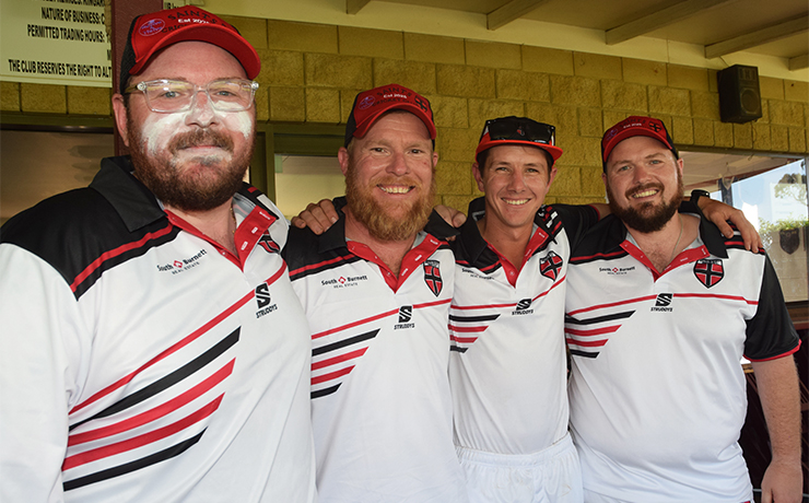 The Saints, as their name implies, includes players and ex-players of the South Burnett Saints Australian Rules team and they play in the Saints’ red, black and white colours.