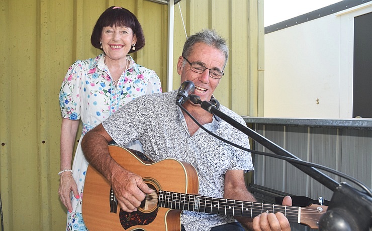 Steve Peterson provided the live music while visitors relaxed under shade outside the hall after a scorching hot day.