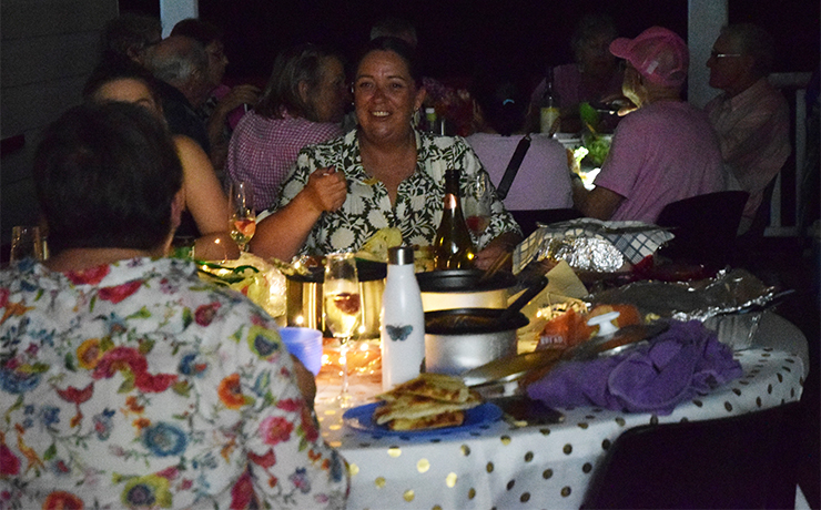 The BYO dinner at Ringsfield House in Nanango was held by candle and torchlight, but no one seemed to mind.