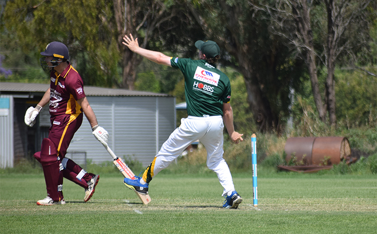 Boars’ wicketkeeper Samuel Dennien failed with the bat but had a very strong game in the field: a stumping, a catch and helping with a runout. Dennien also took a turn bowling, taking 1/9 off 1.1 overs.