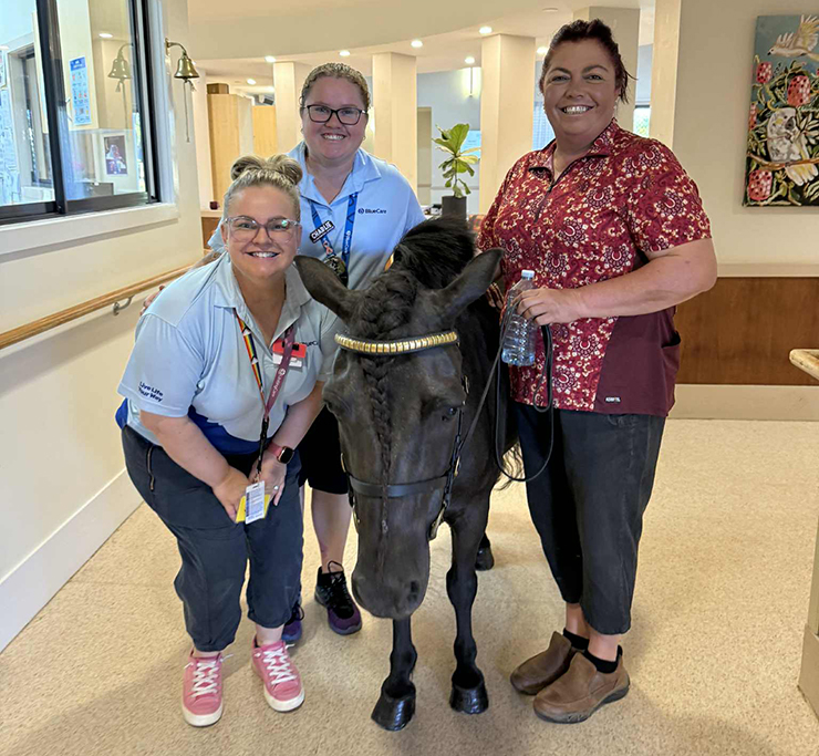 “Tucker”, as he’s known, is the current Pony Pairs Combined Driving Event Australian champion with his brother Gar-Won Trizan … but he is also a real champion for the residents of BlueCare’s aged care facility, Canowindra, in Kingaroy.