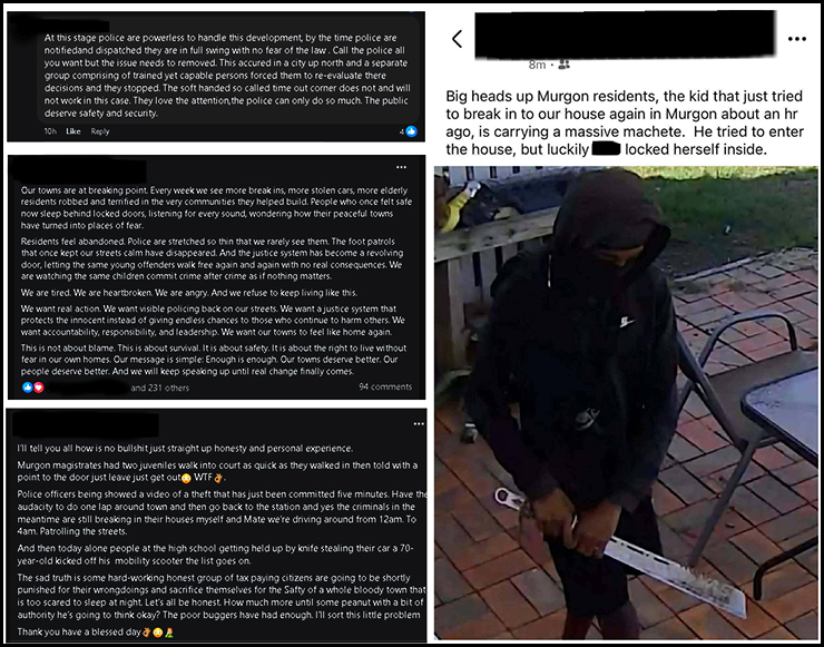 Comments on local Facebook pages (see below) highlight the current anger and fear in the Murgon community: