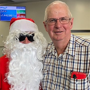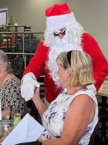 Santa Claus dropped in last week at the Christmas break-up of the South Burnett Genealogical and Family History Society at Kingaroy RSL Club.