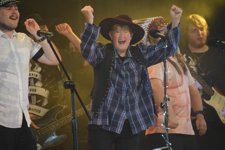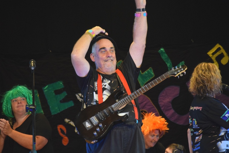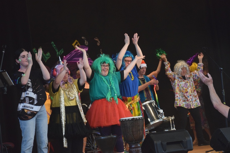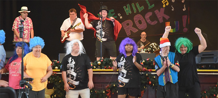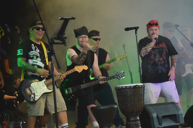The smiles on the faces of the Rockin Our Abilities crew members showed just how much fun they were having on stage after at least six months practice.