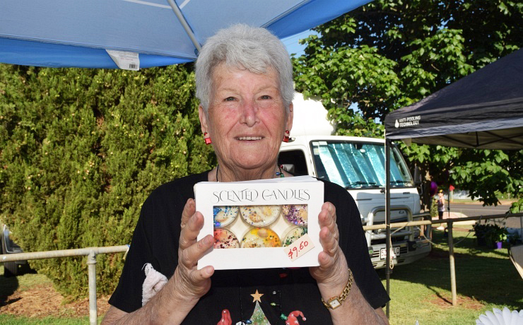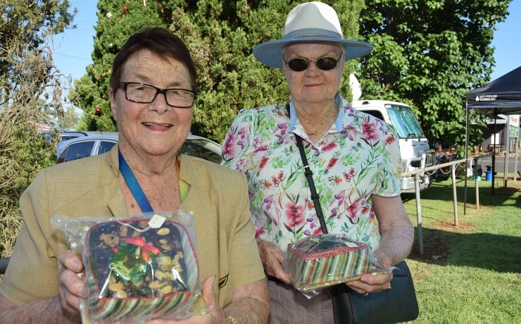 Deputy Mayor Ros Heit with former Kumbia resident Murray BeilGayle Carroll, Desiree Crawford and Linda Thomas were three of the hard-working volunteersJoy Patch, from Beauvale Day Lilies, was one of the local business people who had a stallRita Buchholz, from Kingaroy, with Margaret Kearney, from Kumbia, and some delicious Christmas cakesRhonda Callow, from Kingaroy, had a stall selling craft items, including these scented candlesSanta arrived aboard a fully restored 1960 International fire truck (Photo: Melissa Beil)Santa was sharing secrets with Mark Beil (Photo: Ros Heit)