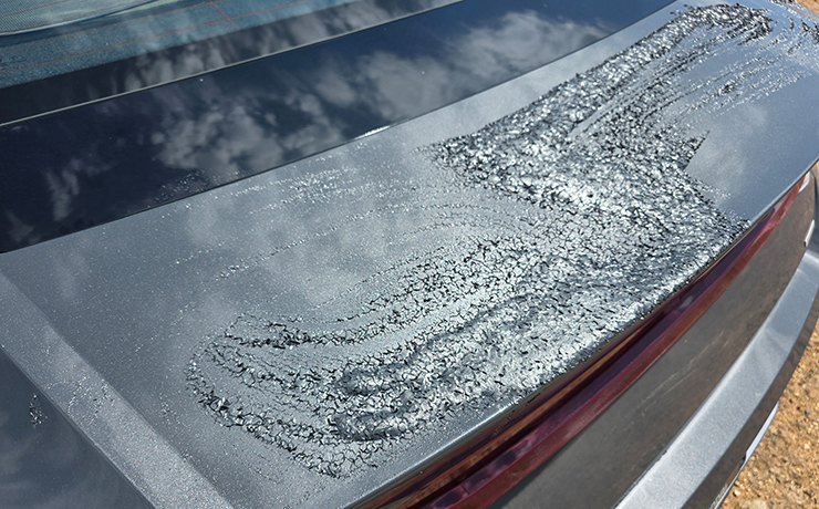 Every panel of the vehicle was damaged, with the chemical stripping paintwork in places down to bare metal.