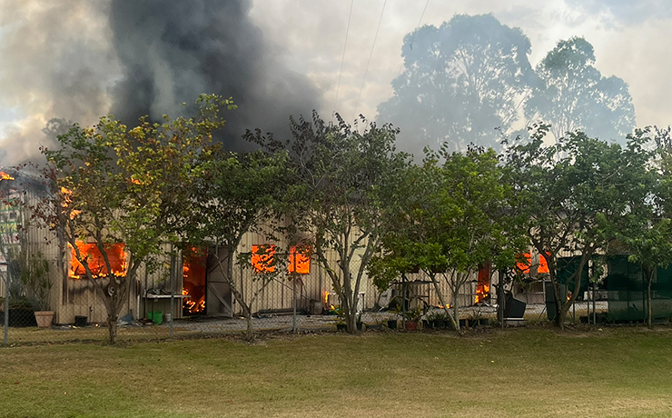 A Queensland Fire Department spokesperson said the building was engulfed in flames when fire crews arrived.