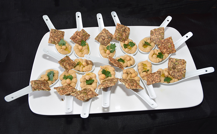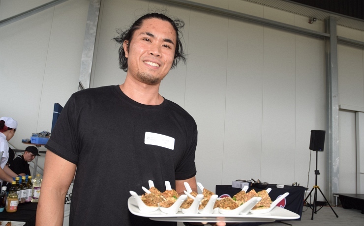 Guests at the opening enjoyed snacks designed by local TAFE culinary teacher Jason Ford made out of peanut and almond powder.