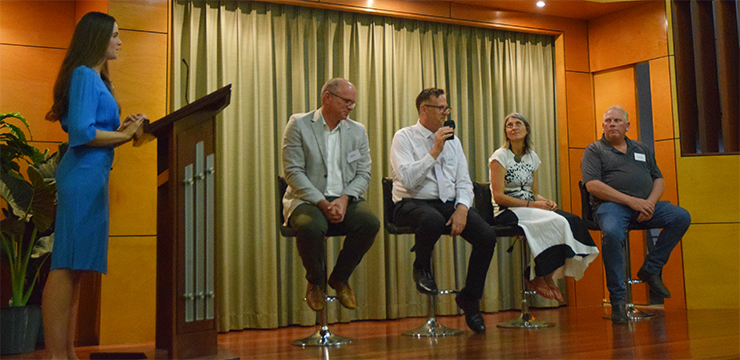 Funeral director Brittany Rose chaired the evening, which included a panel discussion with soil microbiologist Dr Sandra Tsuszynska, Australasian Cemeteries and Crematoria Association CEO Ben Kelly and Cr Heath Sander.
