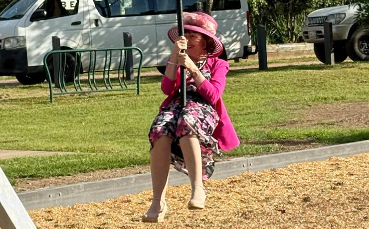 After cutting the ribbon, Mayor Duff also took a ride on the flying fox … and didn’t even lose her hat!